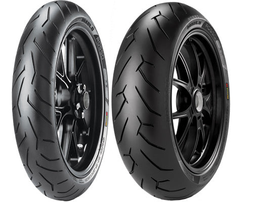 Experience Pirelli technology derived from World Superbike testing and development. The Pirelli Diablo Rosso 2 Tires offer Improved drainage, better wear regularity and advanced performance. Featuring tri-zone dual compound rear, the Diablo Rosso II has a high grip compound on the shoulders and a wet/mileage compound in the center.